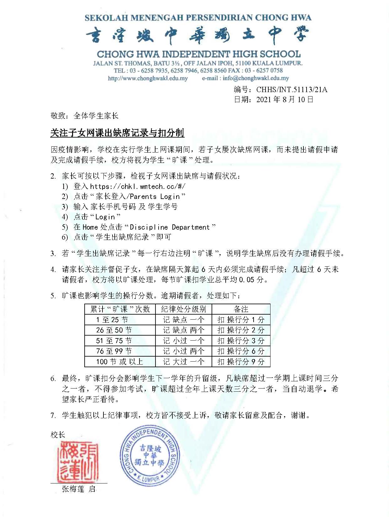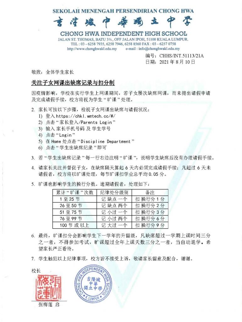 关注子女网课出缺席记录与扣分制通告 August 17, 2021January 15, 2026 资讯中心 下载 PDF 档:关注子女网课出缺席记录与扣分制 FacebookTwitterLinkedin
