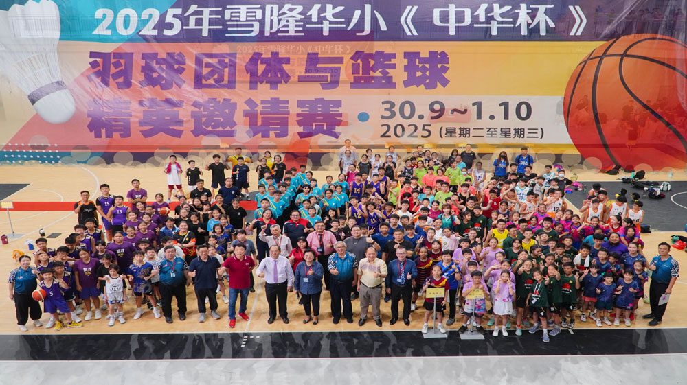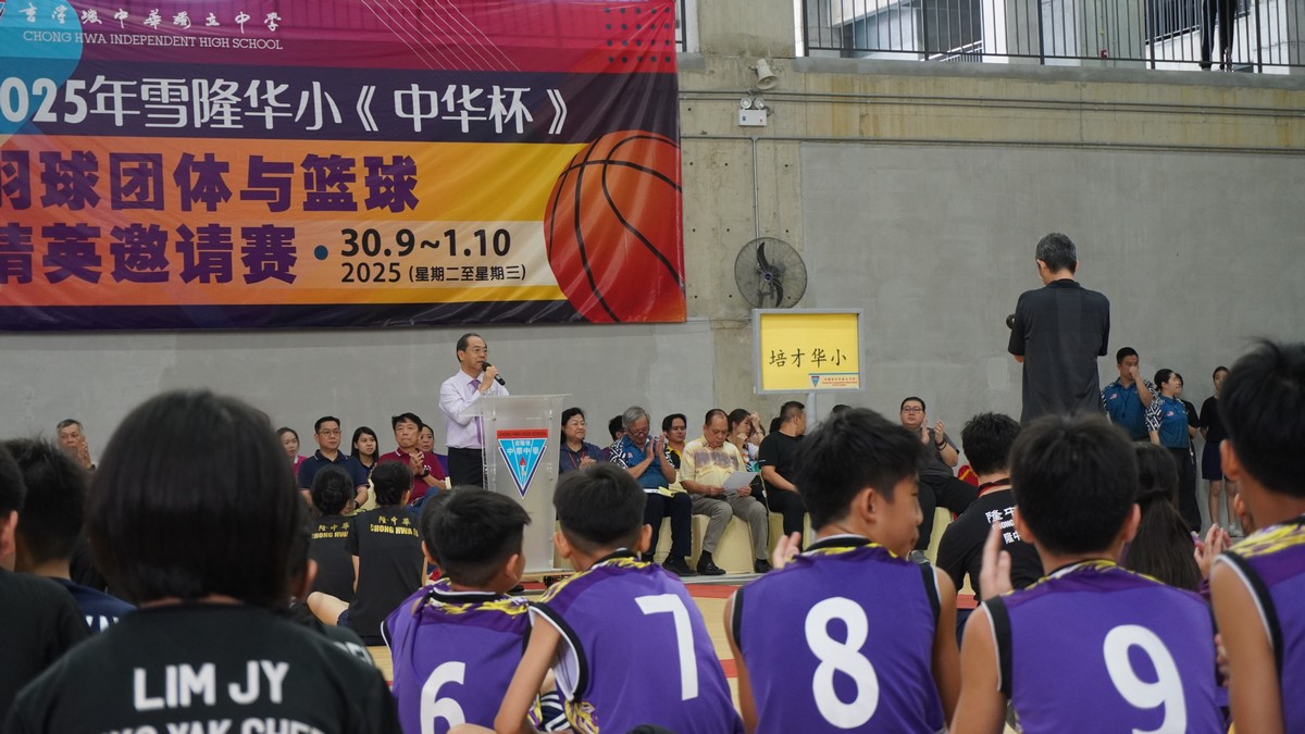 他指出,“中华杯”的举办旨在促进雪隆各华小之间的交流,让学生们在羽球与篮球赛场上的切磋球艺、共同成长。他也期许学生们在升入中学后,能够优先选择隆中华,继续发挥体育专长,并加入隆中华的羽球与篮球团队。此外,他勉励全体参赛选手在比赛中全力以赴、赛出友谊,并强调胜不骄、败不馁的重要性,寄语大家无论成绩如何,友谊始终长存。