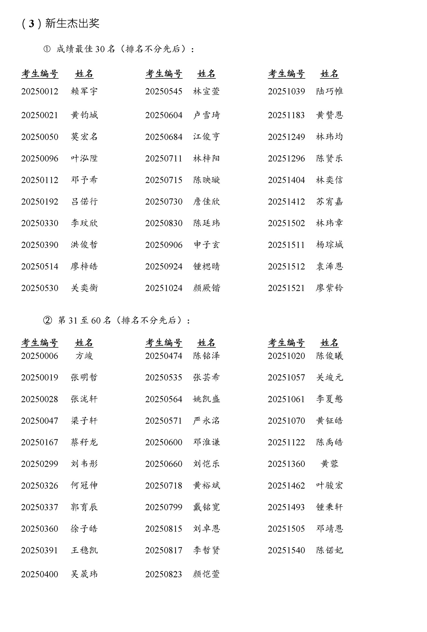 (3)新生杰出奖