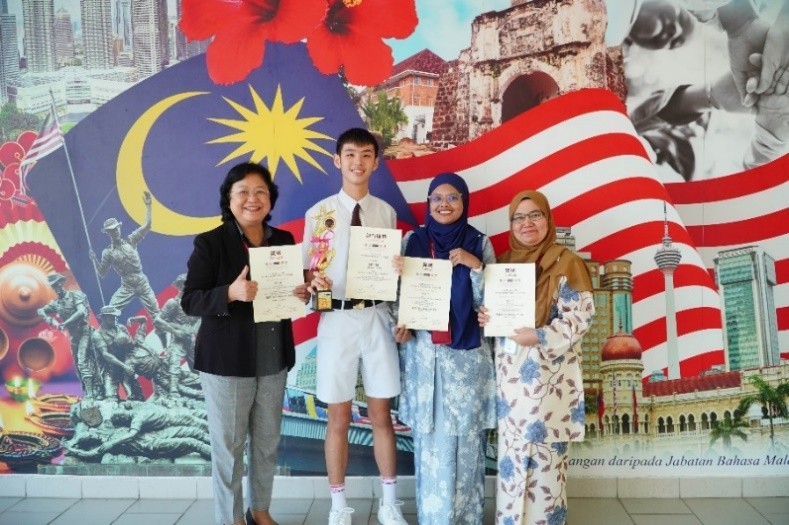 负责老师: | 高中华语:王兆聪老师、陈思群老师、谢宇恒老师、叶珮琪老师 高中国语:Cikgu Nazarimah binti Saad, 陈川蓉老师,Cikgu Nur Ellysha binti Mohd Nawi 高中英语:褚莉娟、Teacher Thyshalini A/P Krishnan 初中华语:黄国兰老师、叶秀清老师、卓莉花老师、李秀兰老师 初中国语:Cikgu Jamilah binti Hassan, Cikgu Nur Atikah binti Ibrahim , Cikgu Norliana binti Abdul Hamid, 罗翠云老师 初中英文:郑镁婷老师、洪铭遥老师 |