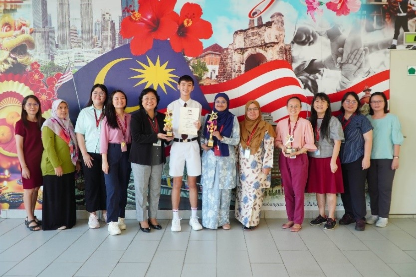左起:罗翠云老师、Cikgu Norliana、洪铭遥老师、郑镁婷老师、张梅莲校长、锺宇轩、Cikgu Nur Atikah 、Cikgu Jamilah、卓莉花老师、叶秀清老师、黄国兰老师、李秀兰老师