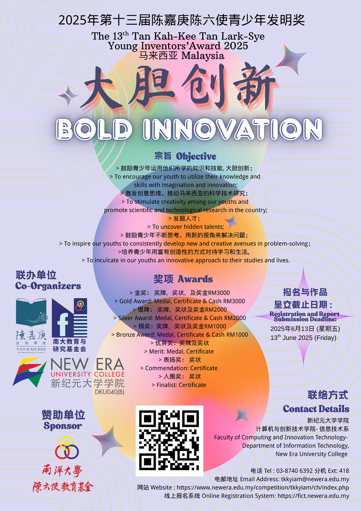 今年比赛旨在鼓励青少年善用知识与创意,培养创新思维与科学精神,发掘国家未来的科研与技术创新人才。