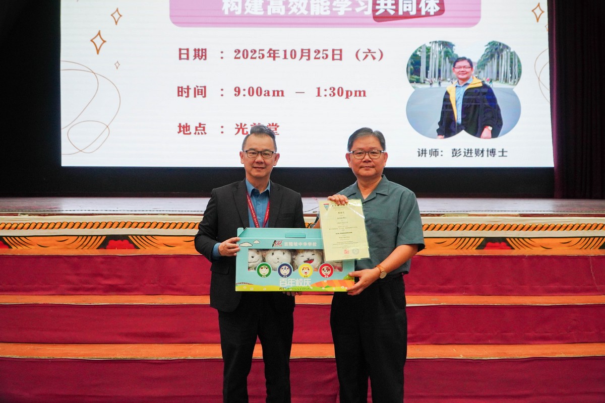 (吉隆坡25日讯)在教育快速转型的新时代,班级经营已不再局限于纪律管理,而是一场以“心”为核心的教育实践。本校教职研修处今日举办“新世代班级经营:从心出发,建构高效能学习共同体”专题讲座,邀请新文龙中华中学校长、博文教育中心执行长及新纪元大学学院硕博士论文指导教授彭进财博士主讲。彭博士长期深耕华文独中教育改革领域,并积极推动教师专业成长。在讲座中,他以丰富的实践经验与专业见解,引导教师重新思考班级经营的本质,强调以学生为中心、情感为基础的教育理念,为教师构建高效能学习共同体提供实用策略与深度启发。