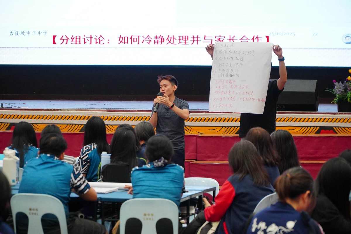课程同时关注教师在实际教学中面临的多重挑战,包括数字原住民学生的科技依赖、家校沟通压力、行政事务负担以及多元背景班级管理。通过案例分析、“2 分钟 × 10 天”关系建立技巧及角色扮演等实践活动,教师在真实情境中练习有效沟通与问题解决能力。培训最后以反思与行动计划作结,教师们表示将把所学策略落实于课堂实践,致力于营造更积极、包容且高效的学习环境,全面促进学生的发展。