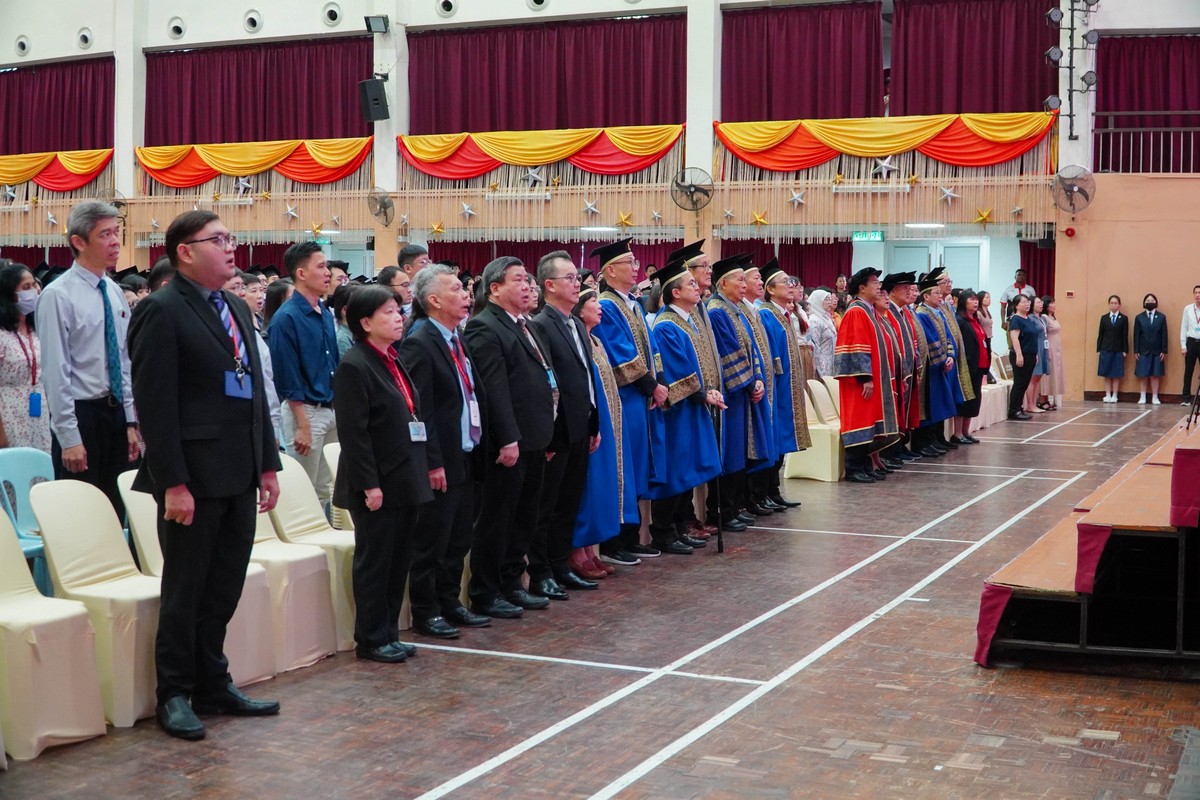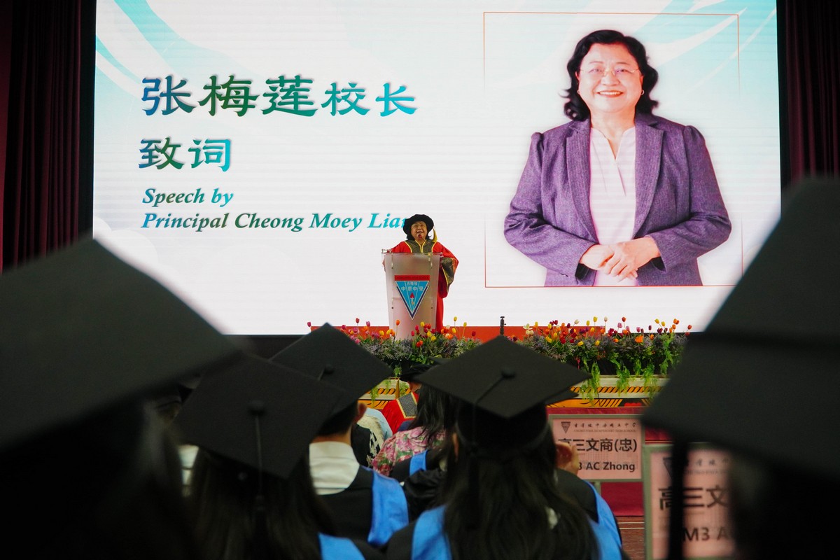本校张梅莲校长向全体高三毕业生致以诚挚祝贺,祝愿大家毕业快乐,并感谢家长们多年来对孩子与学校的坚定支持。她指出,这届毕业生在入学首年便碰上新冠疫情,共经历了长达两年的线上学习。纵使远距教学阻隔了彼此的交流,却阻挡不了学生对学习的热情与坚持。此外,张校长也寄语毕业生三项期望,其一,以实际行动向父母表达感恩;其二,在面对学业挑战时勇于克服难关,并在不同领域开拓属于自己的舞台;其三,未来无论身在何处,都能常“回家”看看老师与母校,关注学校的发展动态。最后,她祝福全体毕业生前程似锦、鹏程万里,带着隆中华精神继续在未来的道路上发光发热。