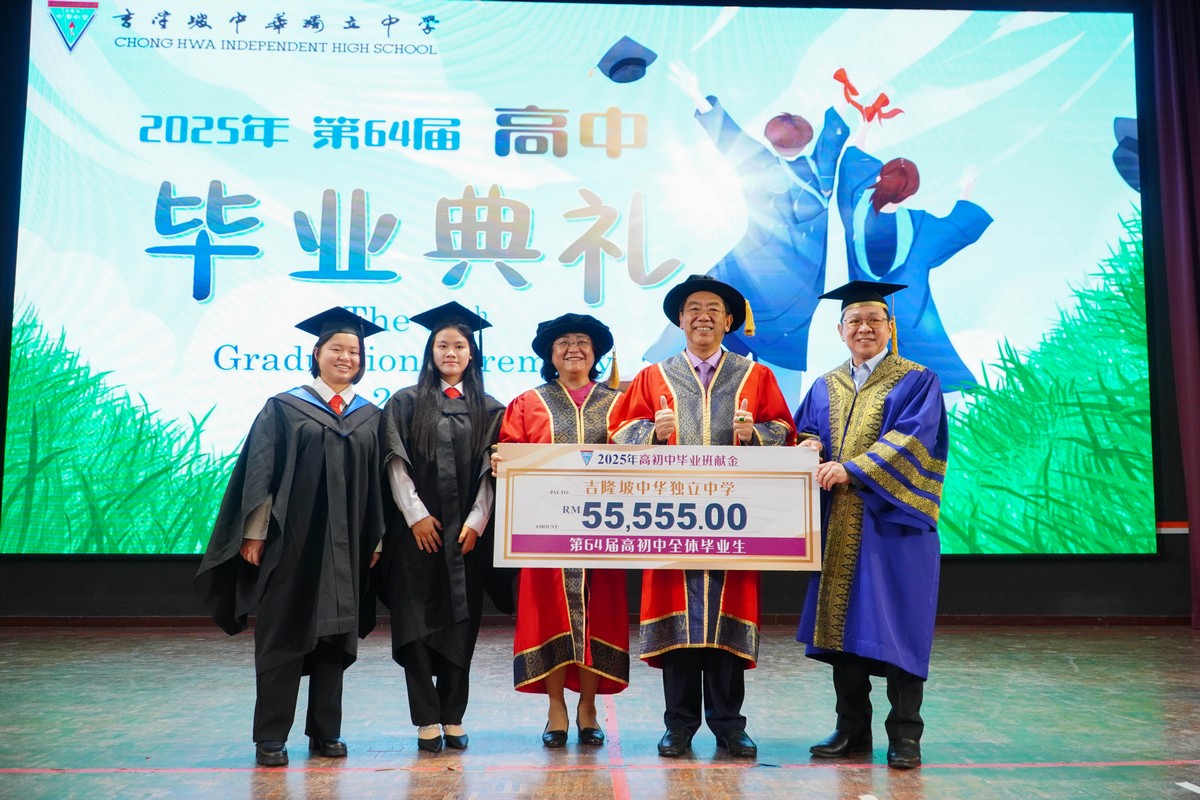 中华校友会主席林耀仁表示,这场高中毕业典礼勾起他对华教发展历程的深刻回忆。早年,华教面对学生人数稀少、筹款艰难等重重挑战,但在各界坚持与努力下,最终走过了艰难阶段,并成功培养出一代又一代的优秀人才。他期许全体毕业生在未来不仅能在各行各业发光发热,为国家建设贡献力量,延续华教精神与价值。