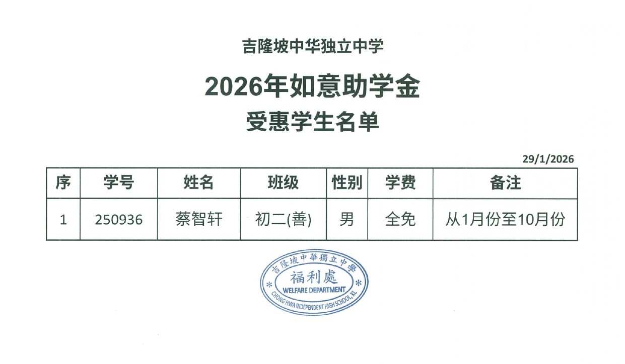 2026年拿督陈华和助学金公布名单