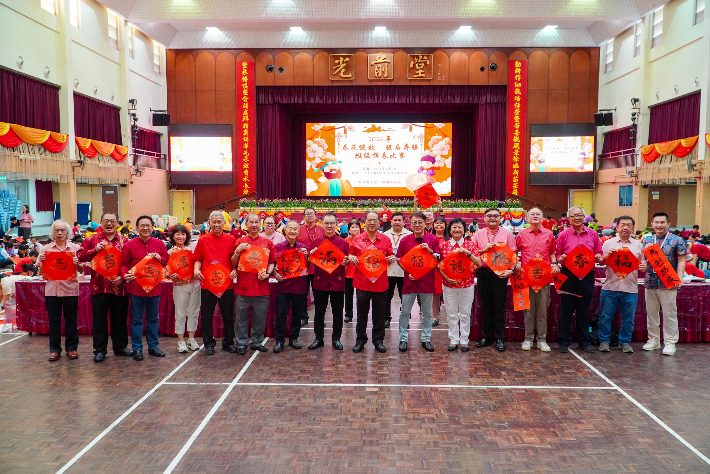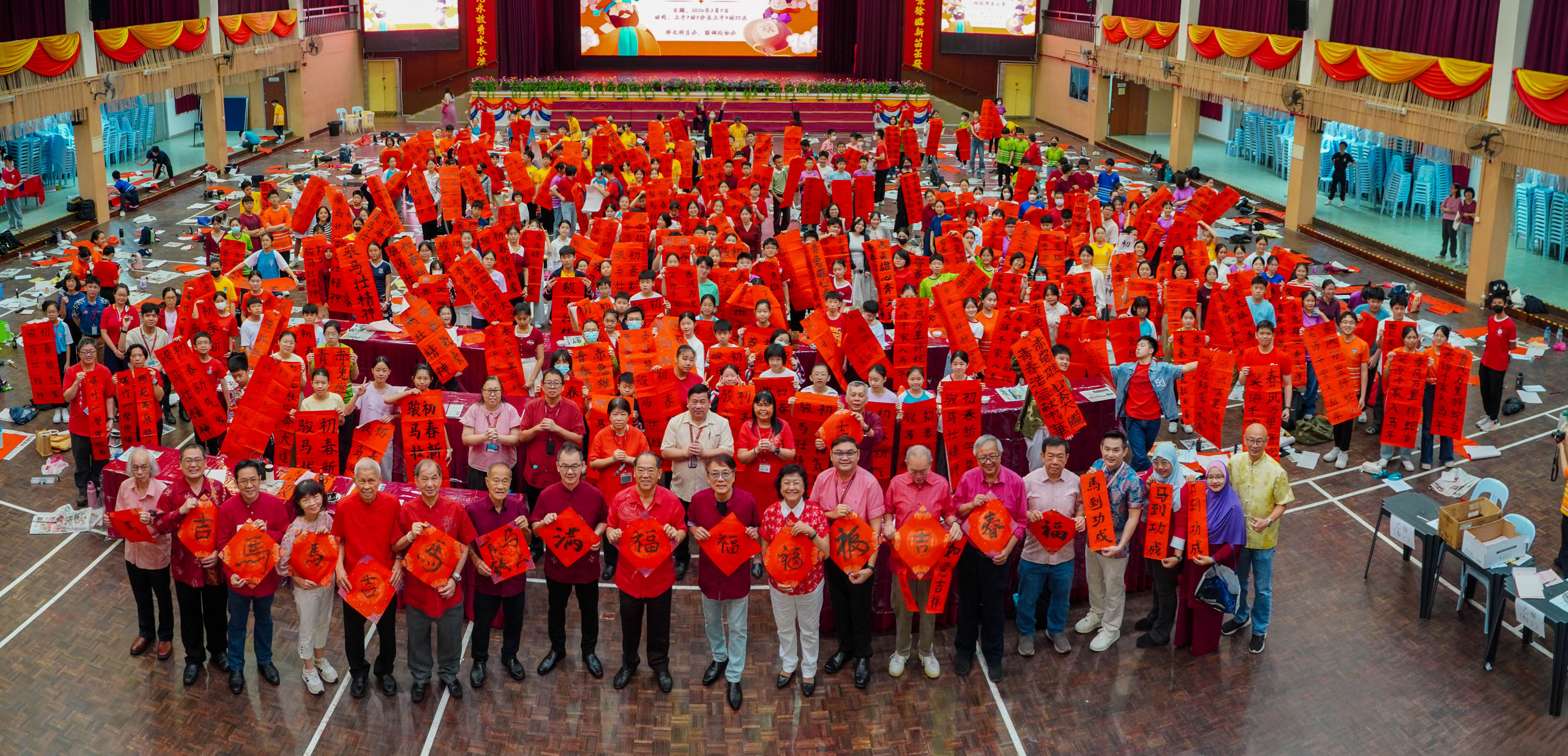 本校华文科与华文学会于2月7日联合举办丙午马年挥春比赛,延续隆中华传承中华文化的传统。本校师生通过书法创作弘扬挥春这一春节习俗,寓意新一年吉祥如意,同时激发他们对书法艺术的兴趣与热爱。比赛现场,师生及常委共同挥毫创作,友族教师亦踊跃参与,展现传统文化的魅力,为新春佳节增添浓厚的文化气息。