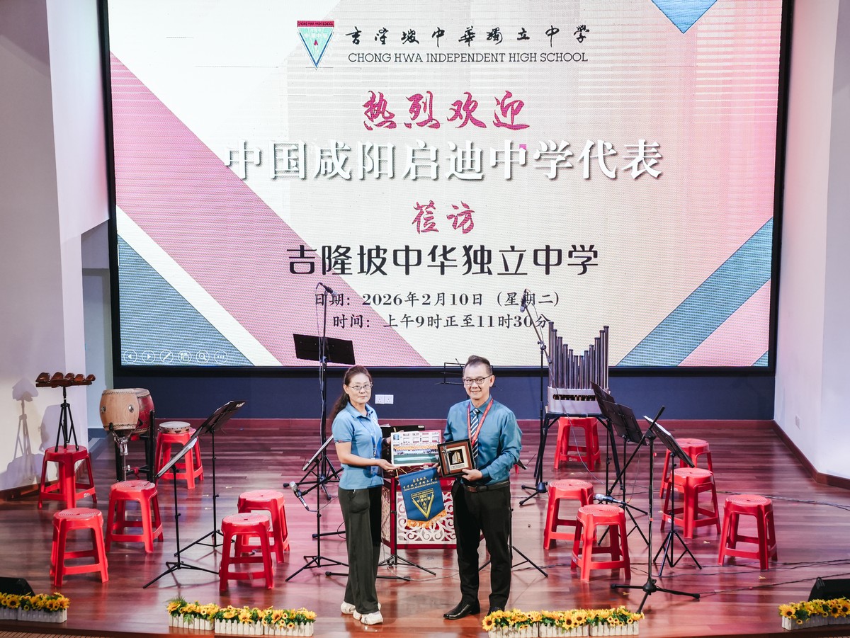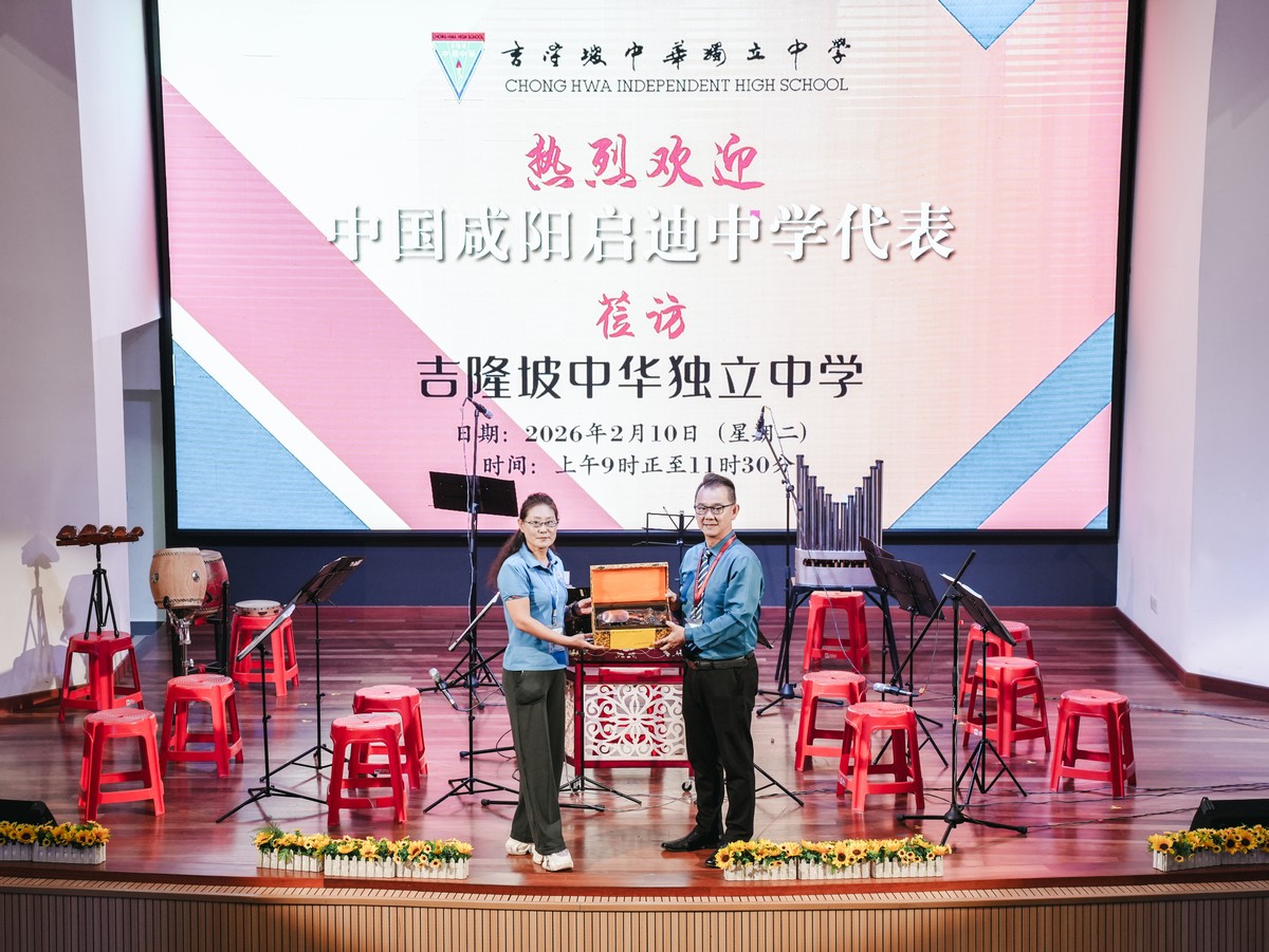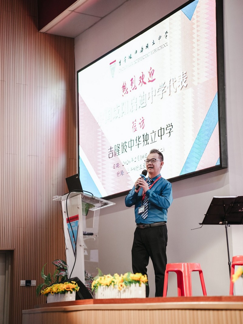 启迪中学校长助理石晓琪主任在致词中感谢本校在百忙之中拨冗接待。她表示,自身一踏入校园,便能深刻感受到本校“礼义廉耻”的校训精神,校园氛围庄重而富有文化底蕴。她也指出,希望透过此次交流机会,让启迪中学的学生进一步了解海外华文教育的发展现况,拓展学习视野。石主任提到,本校以文化为核心的教育理念,与启迪中学的办学方向不谋而合,双方在文化传承与学生培育方面具有共同的教育价值。她也代表启迪中学校长晁晓锋,对本校的热情接待致以诚挚感谢。