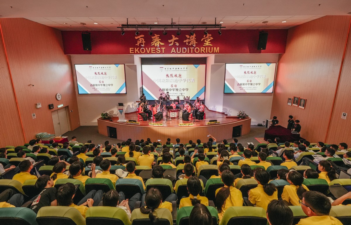 随后,双方进行纪念品交换仪式,象征两校情谊与校际教育交流的延续。接着,本校升学及国际事务处主任郑慧仪老师为来宾介绍海外华文教育的发展概况,并讲解本校校史与办学特色,让参访团进一步了解马来西亚华人社会长期推动独中教育所付出的努力与坚持。此外,本校也播放“辉煌中华同欢晚会”短片,让参访团更全面认识本校学生在全人教育方面所取得的成果。