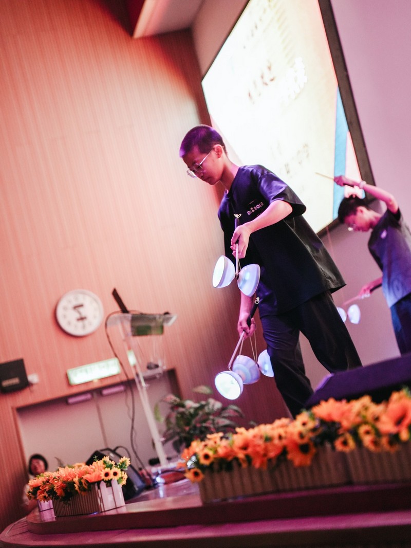 另一方面,本校华乐团演奏《赛马》、《喜洋洋》、《大地回春》、《大日子》及《贺新年》等曲目,旋律热闹欢腾;扯铃学会则呈献精彩的双人扯铃表演;武术学会带来《以武立威》演出,展现刚柔并济的武术精神。多项表演充分展现本校学生在艺术表现与团队合作方面的素养与风采,赢得来宾一致赞赏。最后,参访团前往联课活动中心参与“动起来”体验活动,实地参观教学设施与校园环境,进一步了解本校的教学运作与学习氛围。
