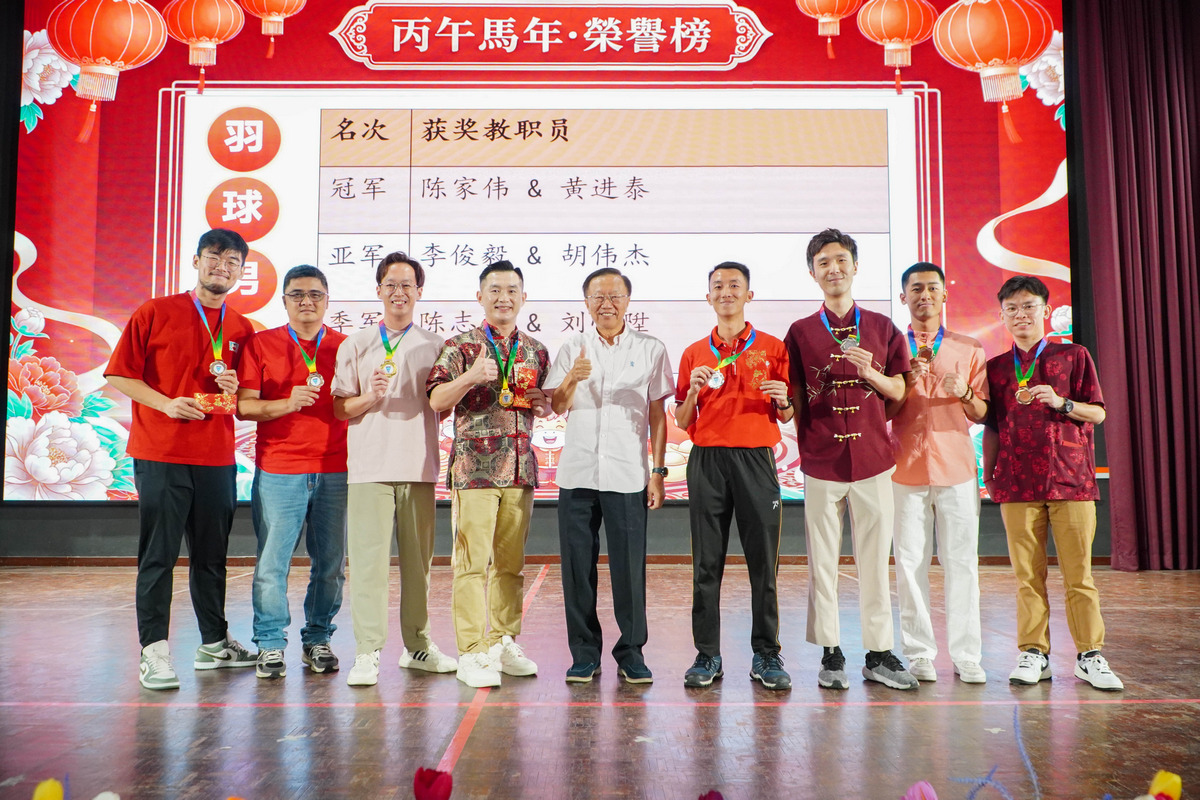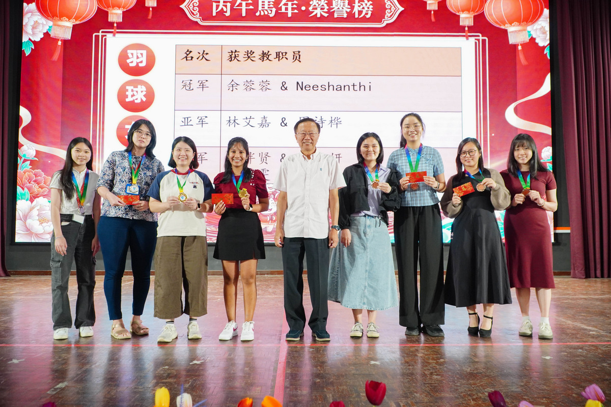 另一方面,本校也在新春联欢午宴上举行颁奖仪式,表扬在“第四届署理董事长杯”教职员球类双打赛以及“2026年校内挥春比赛”中表现优异的教职员,以肯定他们的积极参与与优异表现。此次新春联欢午宴在温馨欢乐的氛围中圆满举行,不仅加深教职员工之间的情谊,也展现出隆中华大家庭的团结与凝聚力。