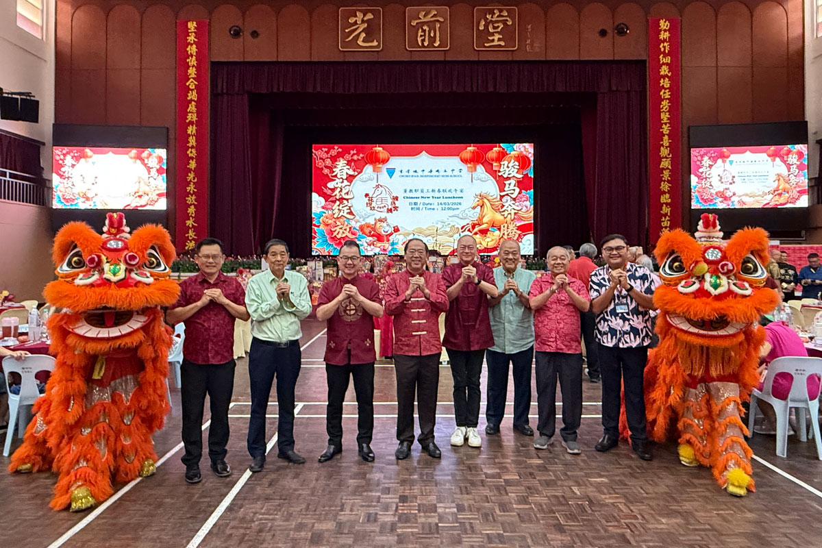 (吉隆坡16日讯)本校教职联谊会今日举办“春花绽放,骏马奔腾”董教职员工新春联欢午宴,全校教职员工欢聚一堂,共迎新春佳节。当天,活动现场气氛温馨热烈,洋溢着浓厚的节日喜悦。为表达对教职员工的关怀与感谢,本校董事长丹斯里拿督斯里林景清与副董事长李廣湖特别联合向全体教职员工派发每人200令吉的新春红包,为大家送上新春祝福,让教职员工在佳节之际感受到学校大家庭的温暖与关怀。