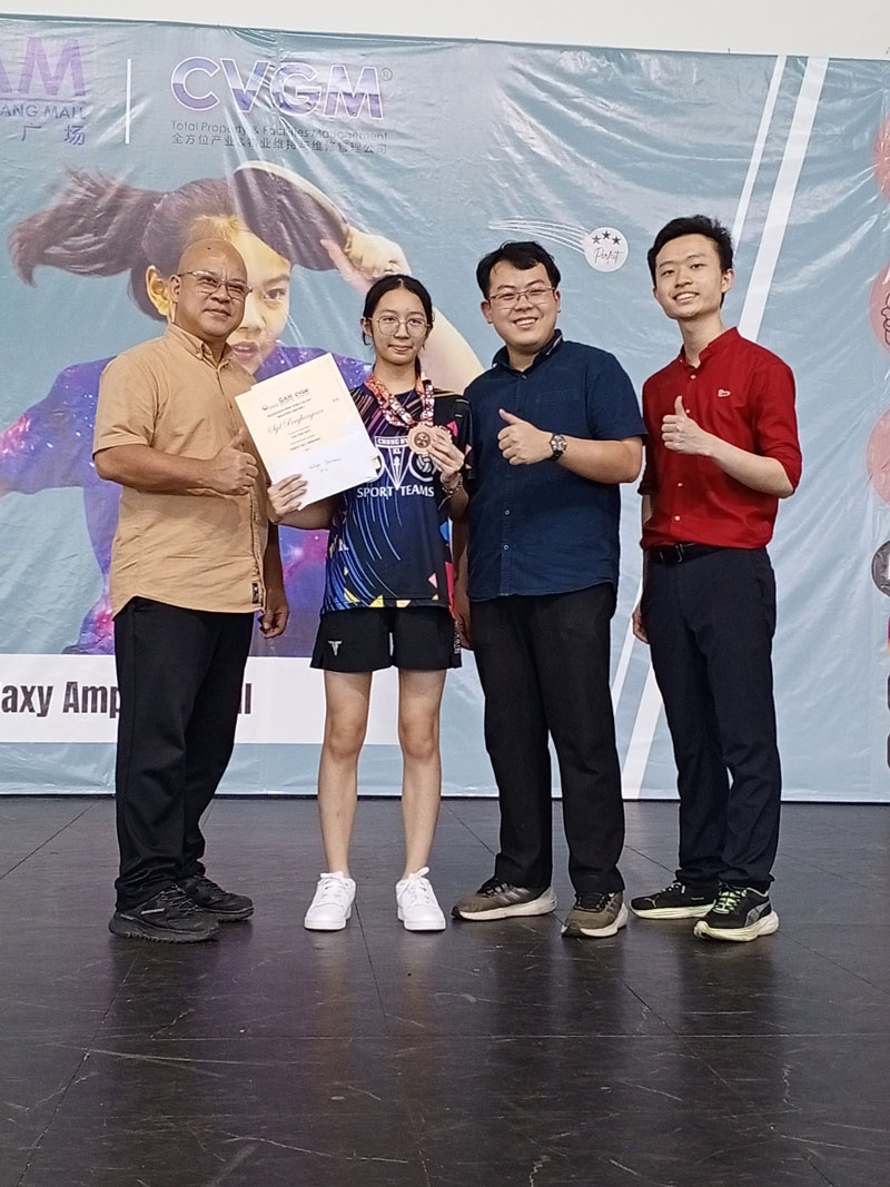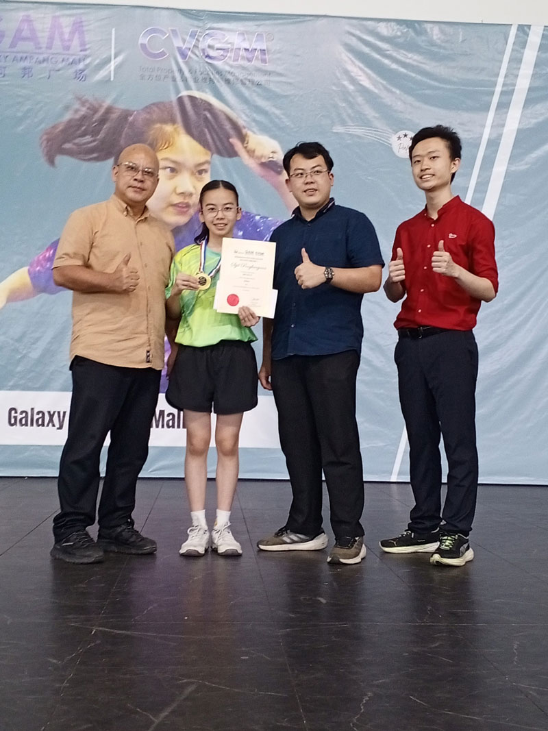 恭贺男女乒乓校队于2026年马来西亚银河邦广场第一届乒乓锦标赛荣获佳绩 April 27, 2026 资讯中心 3 负责单位: 体育处 负责老师: 周诗桦老师 比赛名称: 2026年马来西亚银河邦广场第一届乒乓锦标赛 Kejohanan Ping Pong Galaxy Malaysia 2026_Siri 1 主办单位: 银河邦广场 Galaxy Ampang Mall 比赛日期: 25/04-26/04 2026 比赛地点: 银河邦广场 Galaxy Ampang Mall 成绩表现 序 姓名 班级 学号 项目 成绩 1 杨宇媗 初二慧 250879 U14女子单打 第三名 2 陈颖柔 初一忠 260029 U14女子单打 第三名 3 孙愷忆 初一礼 260477 U14女子单打 第一名 U14女子单打冠军 U14女子单打季军 U14岁女子单打 左下三和五 FacebookTwitterLinkedin