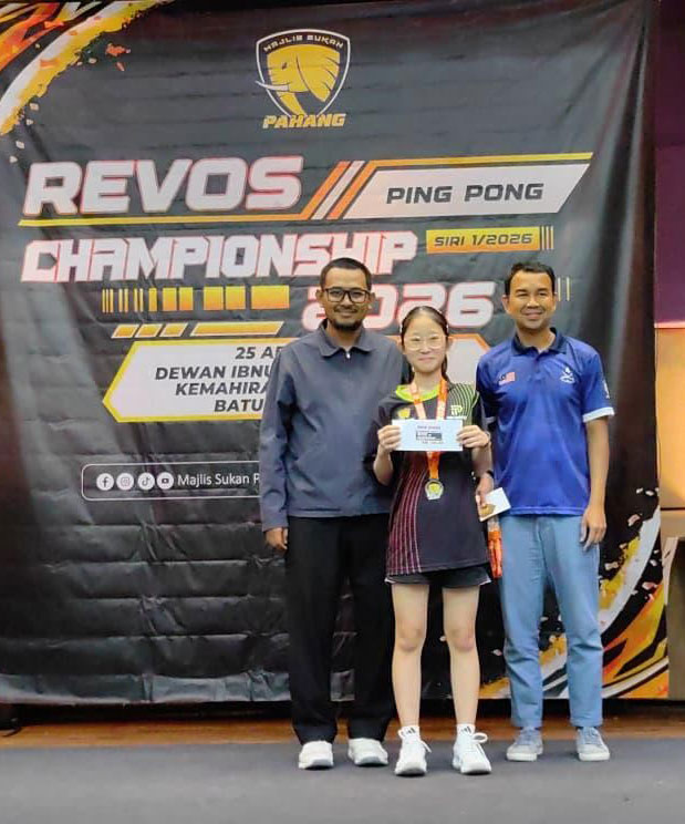 恭贺吴婉宁同学于2026年Revos彭亨州乒乓锦标赛荣获佳绩 April 28, 2026April 28, 2026 资讯中心 3 负责单位: 体育处 负责老师: 周诗桦老师 比赛名称: 2026年Revos彭亨州乒乓锦标赛 Revos Championship (Ping Pong) Pahang 2026 主办单位: 彭亨体育理事会 Majlis Sukan Pahang 比赛日期: 25/04 2026 比赛地点: Dewan Ibnu Khaldun 成绩表现 序 姓名 班级 学号 项目 成绩 1 吴婉宁 初二廉 250185 U15女子单打 第一名 2 U19女子单打 第二名 U15岁女子单打 左二 U19女子单打 FacebookTwitterLinkedin