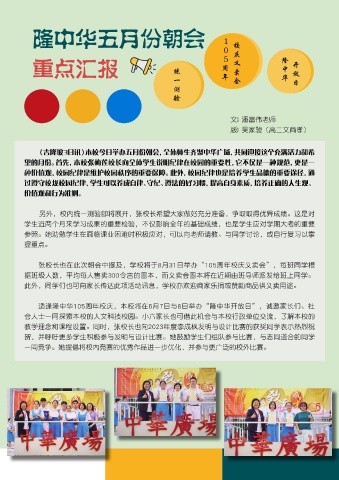 适逢隆中华105周年校庆,本校将在6月7日与8日举办“隆中华开放日”,诚邀家长们、社