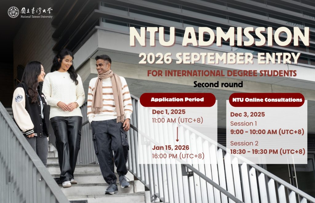 國立臺灣大學 【2026年 9 月】國際學位生入學申請已經開放!