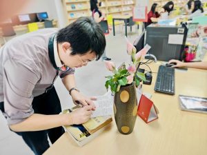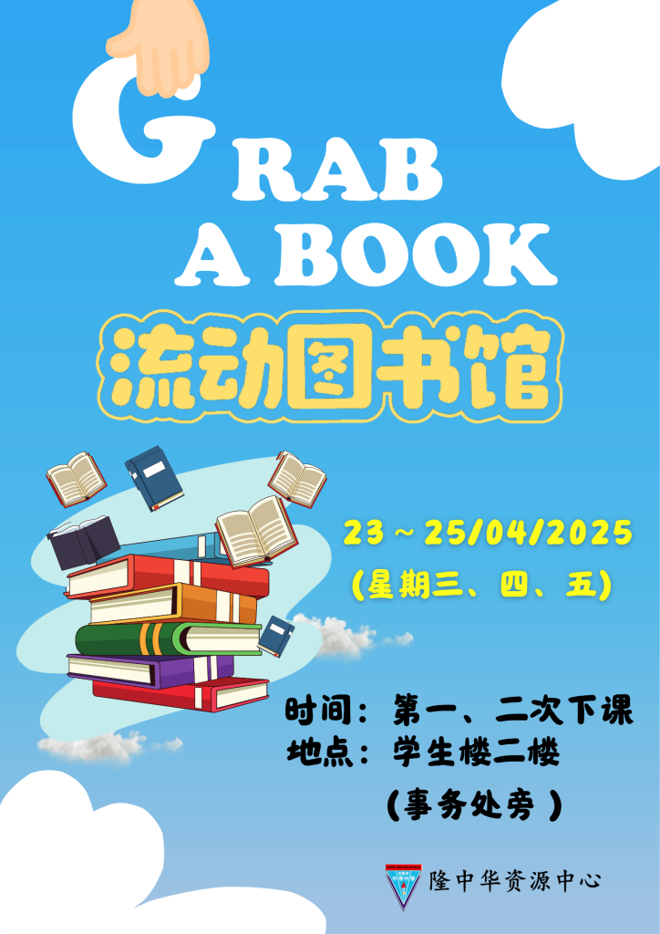 世界阅读日 2025年4月23至25日举行,为了配合“世界阅读日”,此次活动除了让学生借阅书籍外,还增设了“世界很大,书让我们靠得更近”撰写阅读心得活动。 世界很大-书让我们靠得更近海报 书香为伴,花香致谢 Books & Blooms 凡借书并填写建议卡的教师,皆可获赠一朵玫瑰 布置Grab A Book流动图书馆的场地 浏览次数: 4